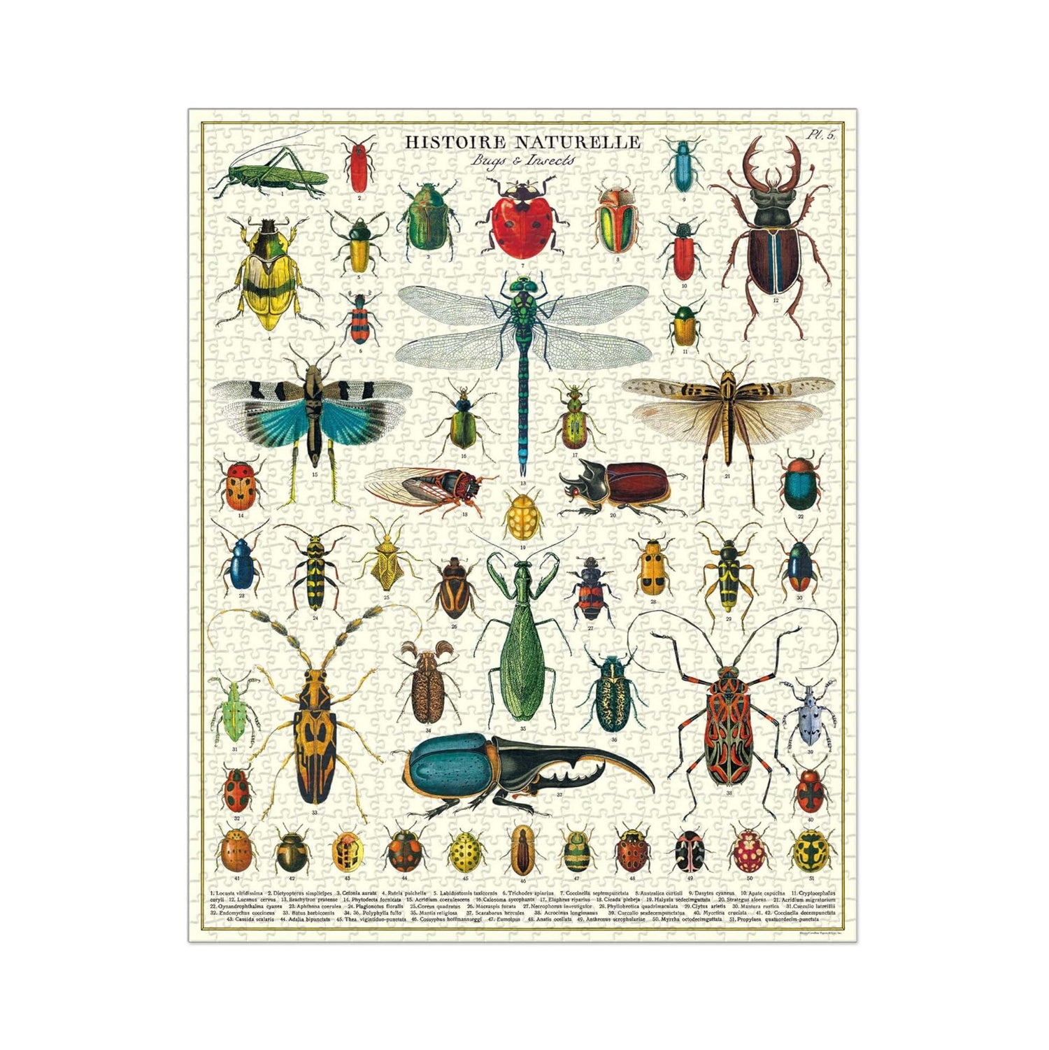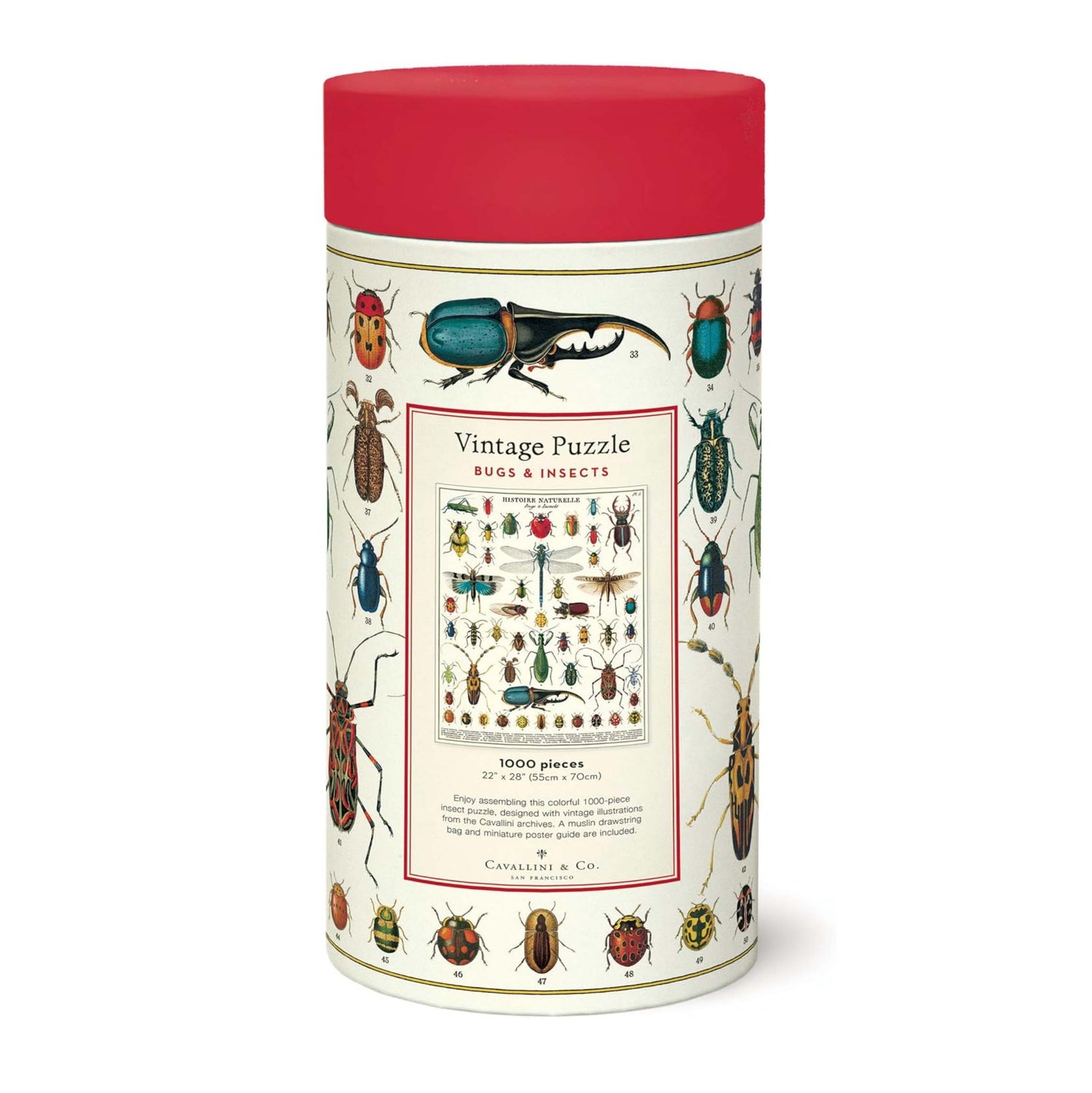This gorgeous puzzle depicts an array of colorful bugs and insects. The image is from the wonderful Cavallini archives. It is packaged in a sturdy cardboard tube, and a muslin drawstring bag.