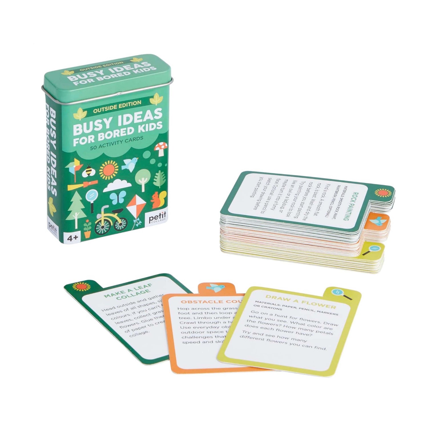 Out of ideas for how to interest bored kids? Pick a card! These card packs come in a handy flip-top tin that include 50 fun ideas to keep boredom at bay, outside, in the kitchen, and inside on rainy days.