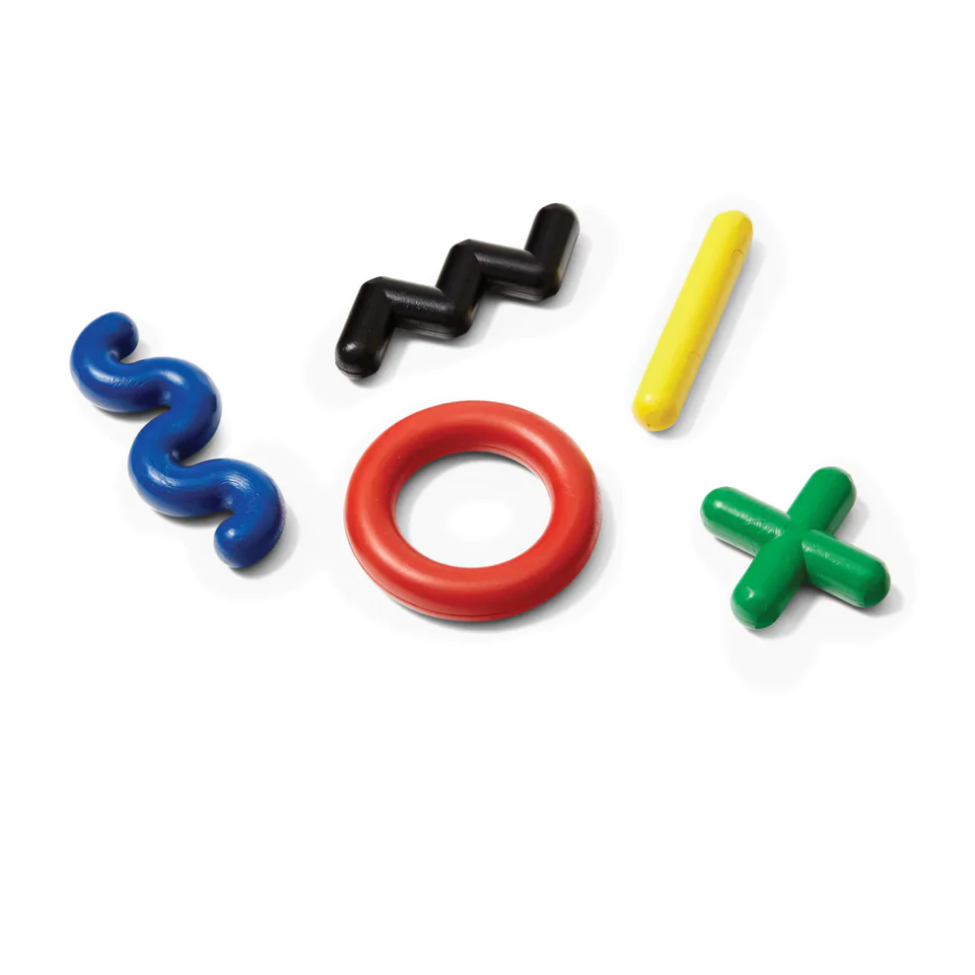 Formed in dynamic shapes—squiggle, zigzag, hoop—this crayon set is composed of tactile drawing objects that give kids a variety of ways to doodle and create art. Pull them along on their sides or push them around flat—your kids will have fun exploring new ways to draw.