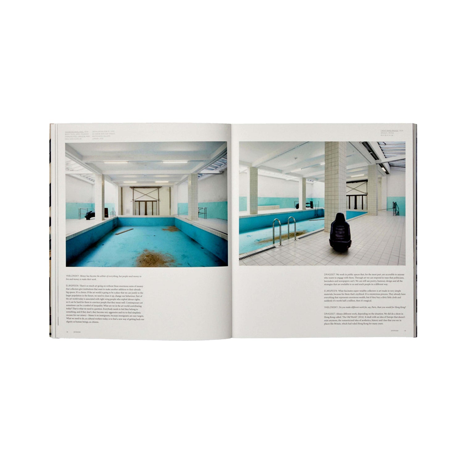 Drawing from disciplines as divergent as institutional critique, social politics, performance, design, and architecture, Elmgreen & Dragset's work reconfigures the familiar with characteristic and subversive wit. Their sculptures and installations, also known as 'Powerless Structures', have redefined what it means to experience art - the cover features their work Van Gogh's Ear, a sculpture in the form of a swimming pool, which is located on Fifth Avenue in New York at the entrance to the Rockefeller Center.