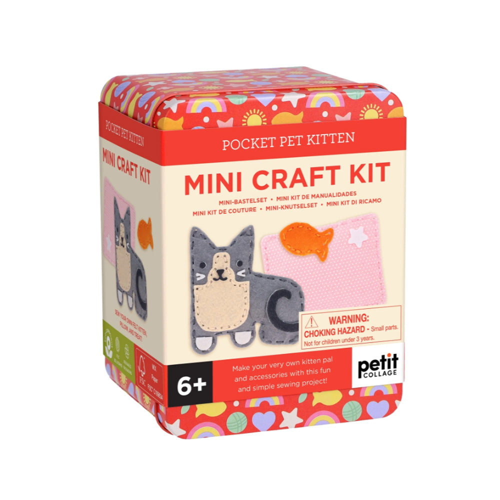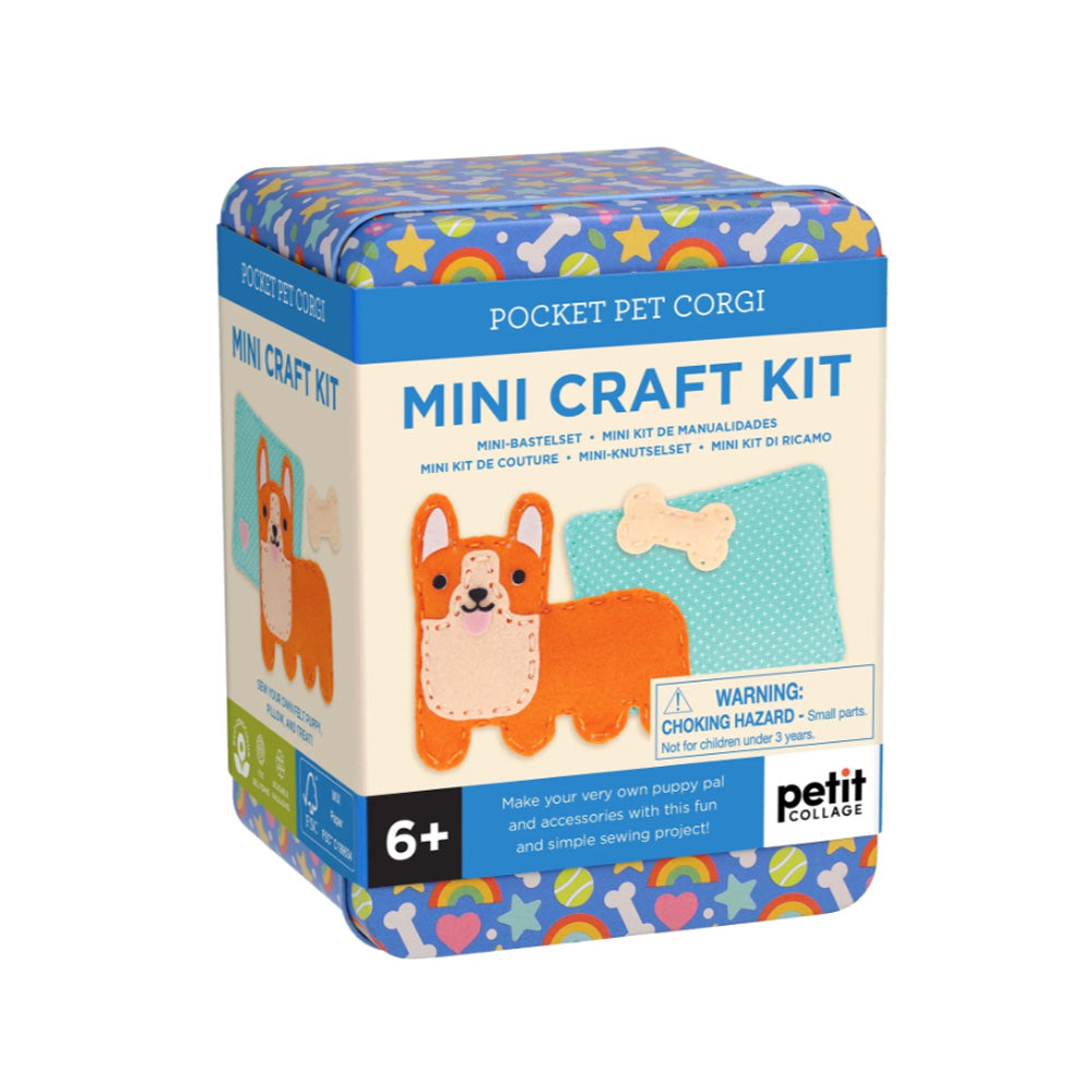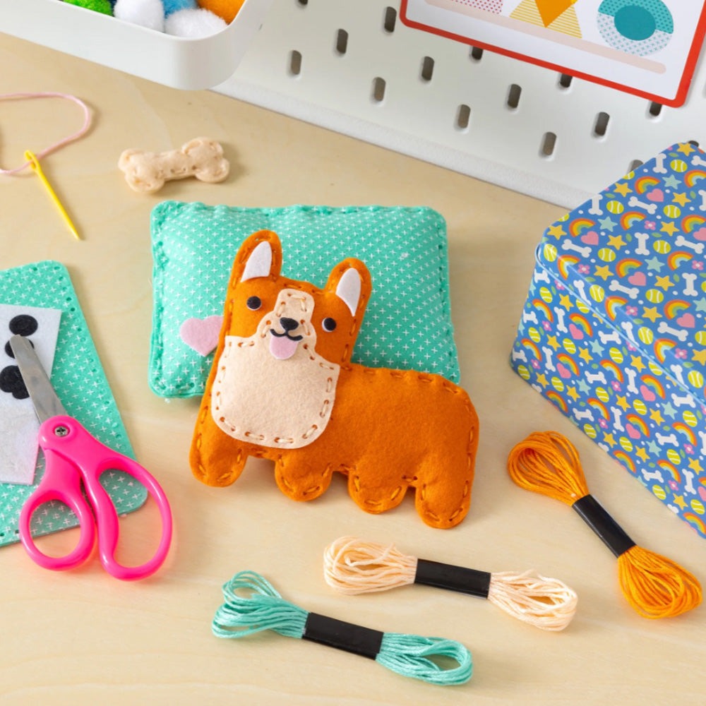 Inside, you’ll find seven pre-shaped felt pieces, stuffing, embroidery thread in three colors, a child-safe needle, self-adhesive felt stickers, and simple-to-follow instructions. The completed cat or dog measures 4.2" x 4.3"— perfect for popping in your pocket or travel bag to take with you on trips! The portable tin is sized for you to craft on the go, and it doubles as a carry case for your pet to nestle in with their pillow and accessories.