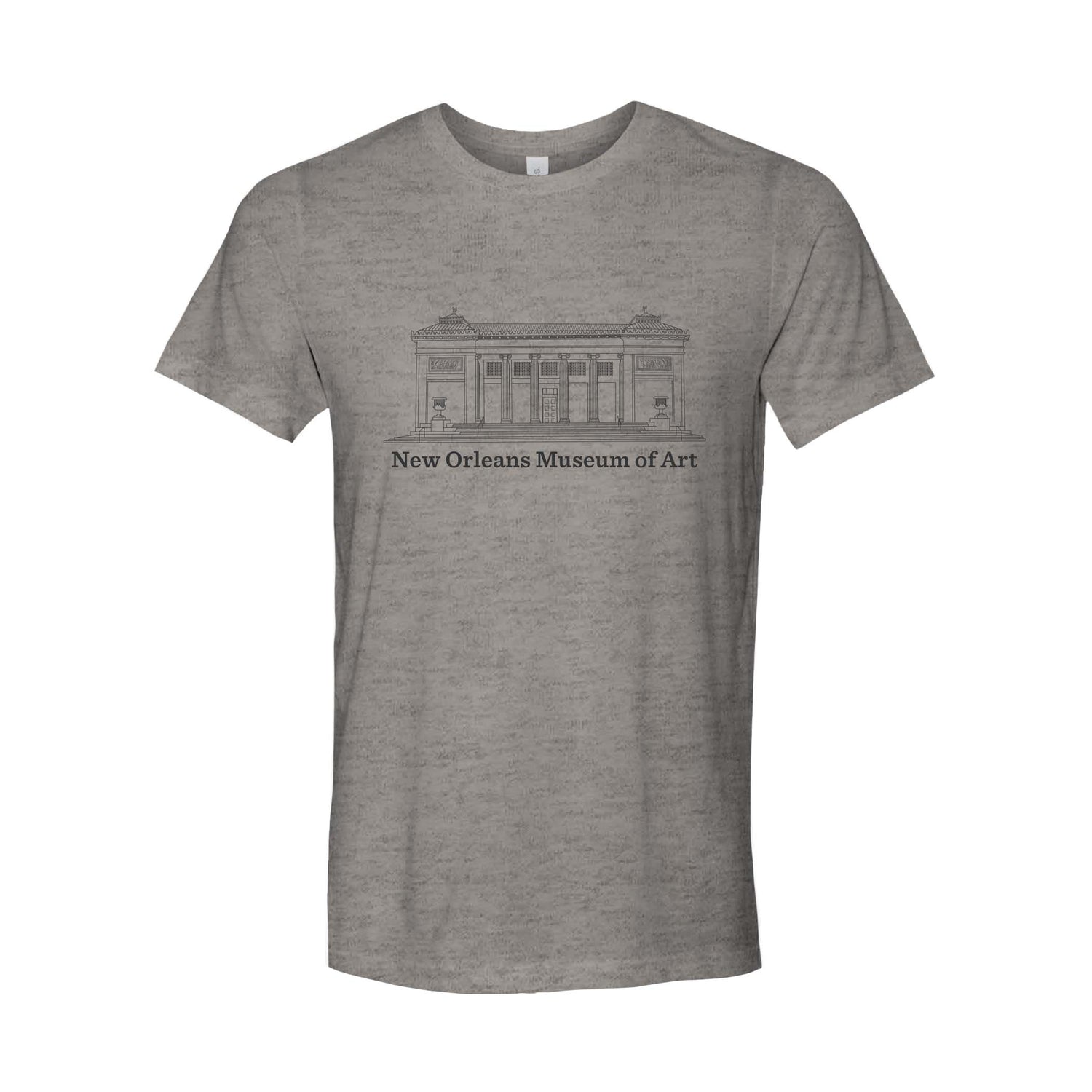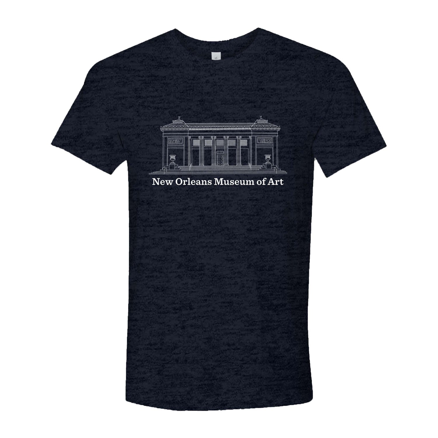 Show your support with your own New Orleans Museum of Art t-shirt! The front features a minimalistic design of the museum, with a silhouette of a griffin, which can be seen in our architecture, on the back. Both designs are screen printed onto a cotton/polyester blend t-shirt. All sizes are unisex and run true to size.