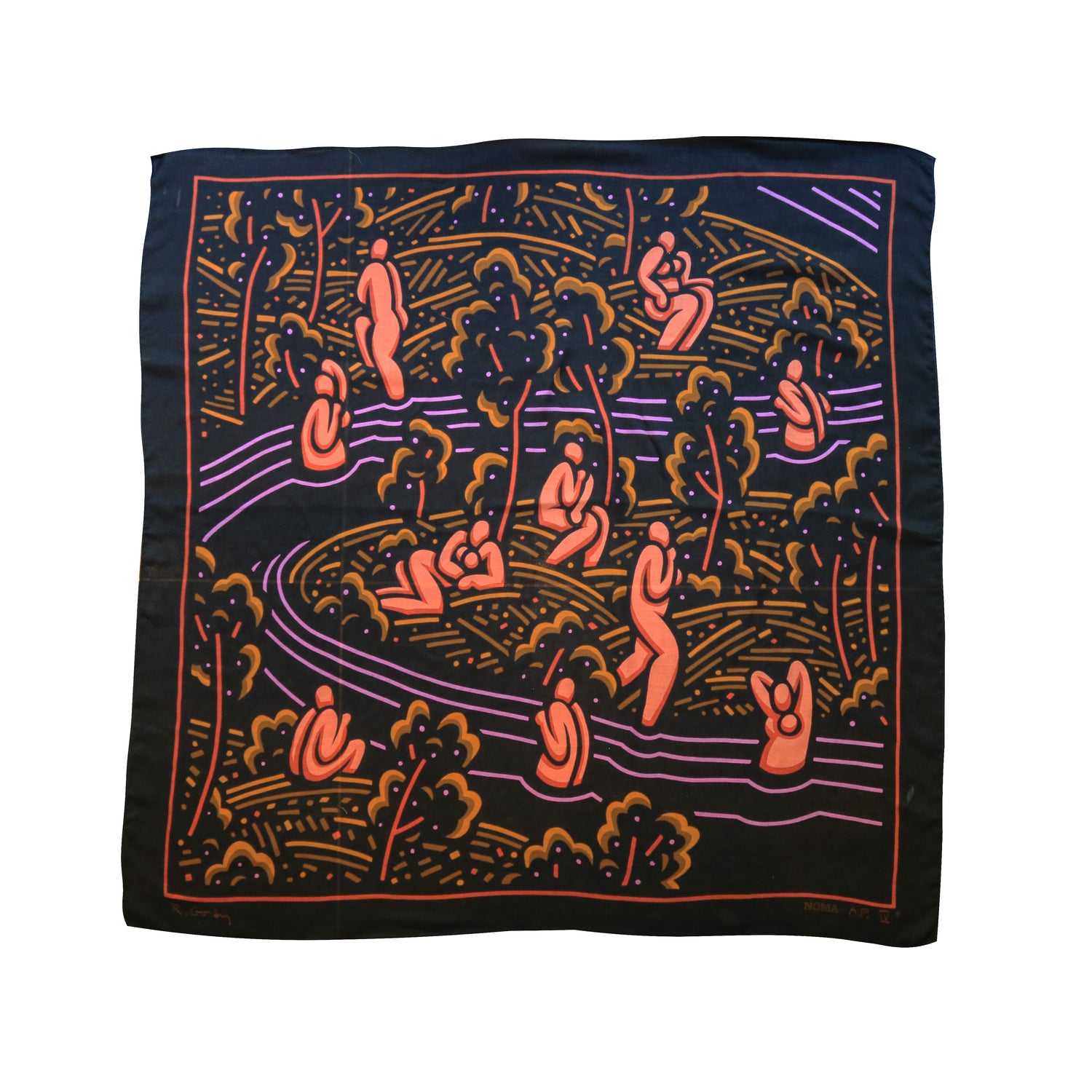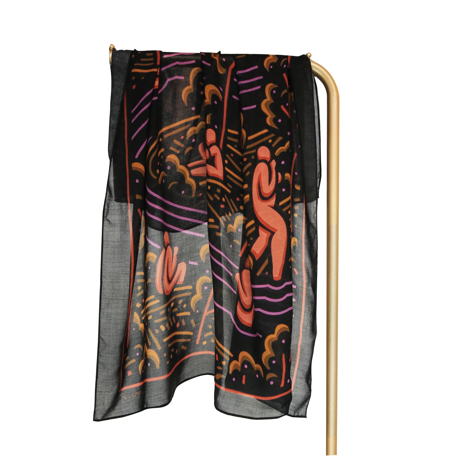 Accessorize with a work of art! Made from a blend of cashmere and modal, this piece is lightweight, soft, and comfortable. The pattern is a reproduction of Robert Gordy's Sweet Afton.