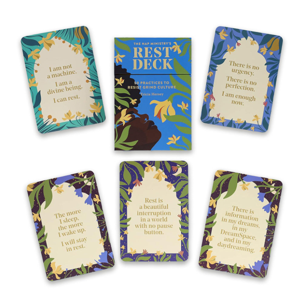 The Nap Ministry's Rest Deck is a rousing call to reclaim rest in everyday life. Delivered in a stunning package with gold accents and gorgeous artwork throughout, the deck combines restorative meditations with prescient wisdom. Readers will discover 50 inspiring cards, each with an empowering affirmation and a simple practice to encourage rest, care, and imagination.
