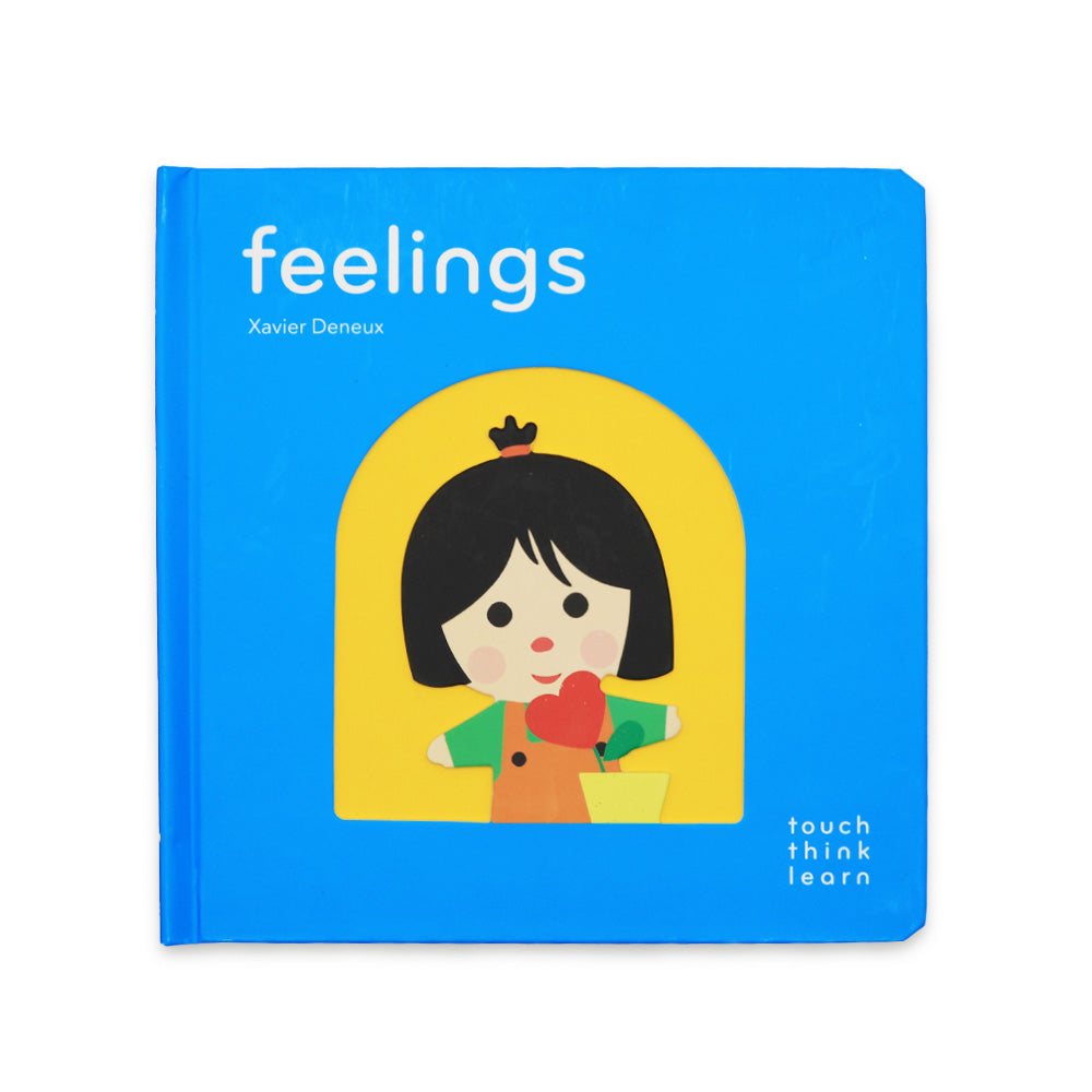 TouchThinkLearn: Feelings by Xavier Deneux is a tactile board book with scooped-out die-cuts and raised elements that invites little readers to explore a range of emotions—from joy to anger—in a hands-on way.